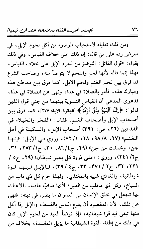 نام کتاب : تجديد أصول الفقه ومعالمه عند شيخ الإسلام ابن تيمية ويليه المنحى التطبيقي للقياس الأصولي وصلته بالإجتهاد المعاصر نویسنده : محمد خالد منصور جلد : 1 صفحه : 76