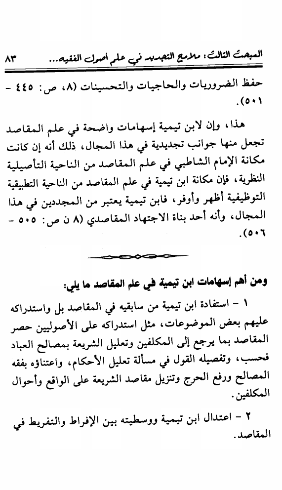 نام کتاب : تجديد أصول الفقه ومعالمه عند شيخ الإسلام ابن تيمية ويليه المنحى التطبيقي للقياس الأصولي وصلته بالإجتهاد المعاصر نویسنده : محمد خالد منصور جلد : 1 صفحه : 83
