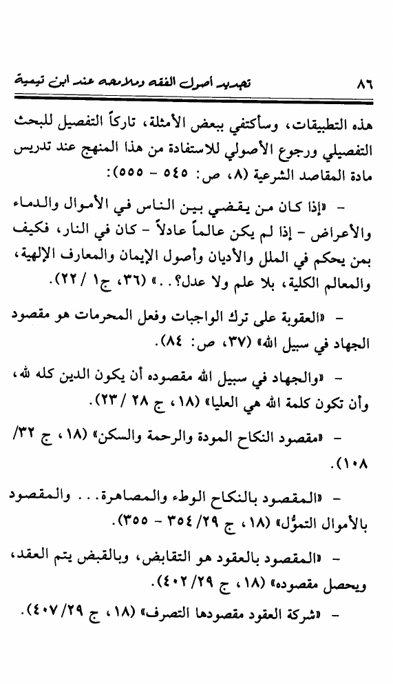 نام کتاب : تجديد أصول الفقه ومعالمه عند شيخ الإسلام ابن تيمية ويليه المنحى التطبيقي للقياس الأصولي وصلته بالإجتهاد المعاصر نویسنده : محمد خالد منصور جلد : 1 صفحه : 86