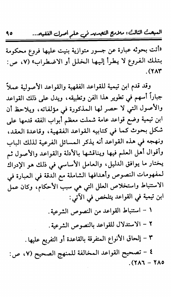 نام کتاب : تجديد أصول الفقه ومعالمه عند شيخ الإسلام ابن تيمية ويليه المنحى التطبيقي للقياس الأصولي وصلته بالإجتهاد المعاصر نویسنده : محمد خالد منصور جلد : 1 صفحه : 95