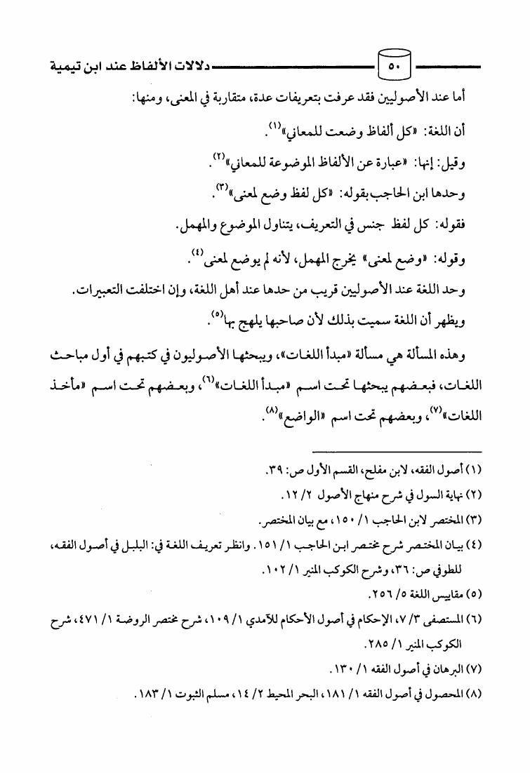 دلالات الألفاظ عند شيخ الإسلام ابن تيمية جمعا وتوثيقا ودراسة