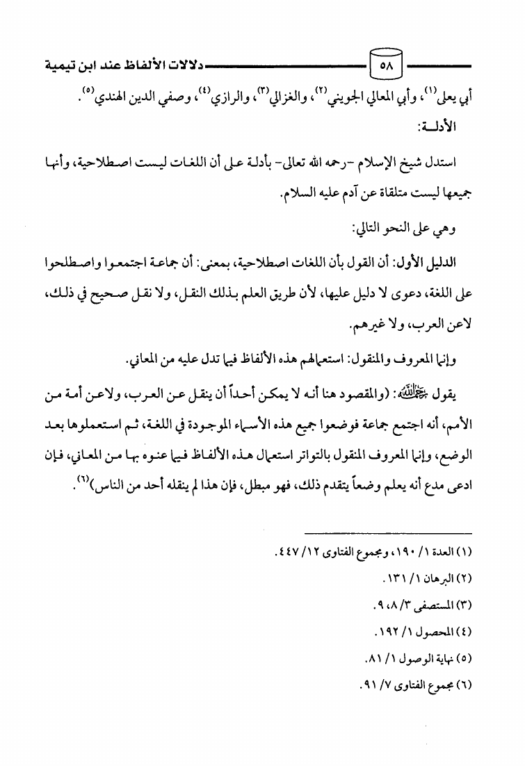 دلالات الألفاظ عند شيخ الإسلام ابن تيمية جمعا وتوثيقا ودراسة