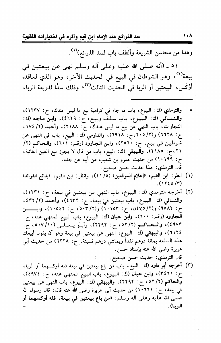 سد الذرائع عند الإمام ابن القيم وأثره في إختياراته الفقهية