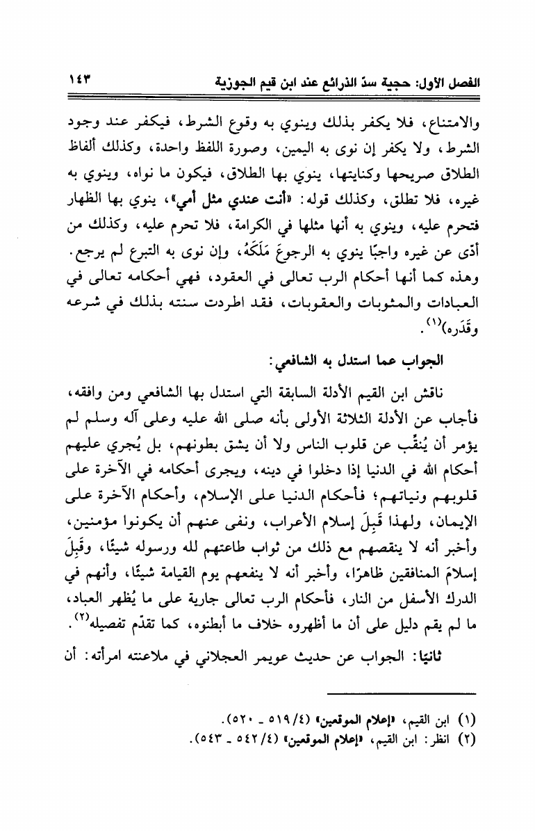 سد الذرائع عند الإمام ابن القيم وأثره في إختياراته الفقهية