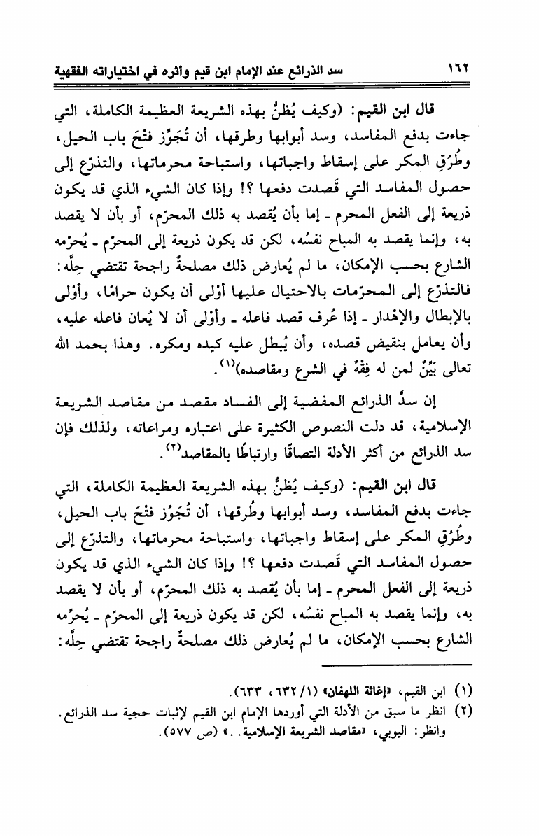 سد الذرائع عند الإمام ابن القيم وأثره في إختياراته الفقهية