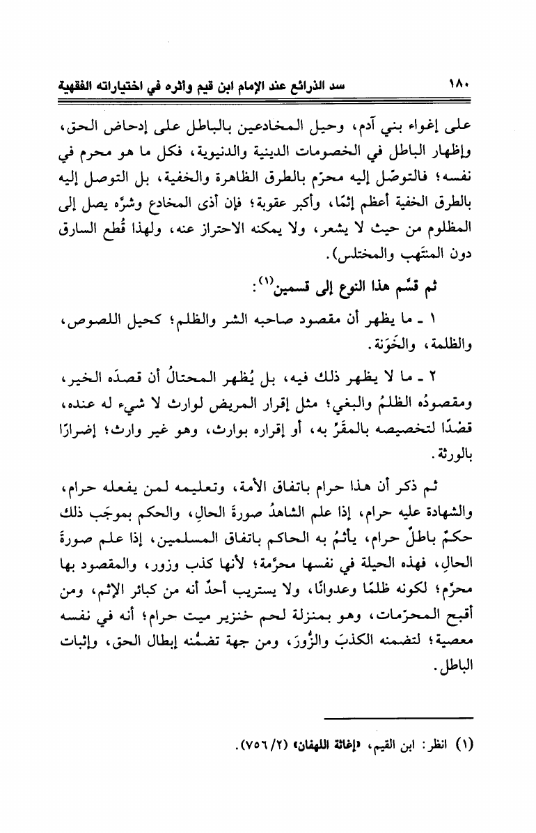 سد الذرائع عند الإمام ابن القيم وأثره في إختياراته الفقهية