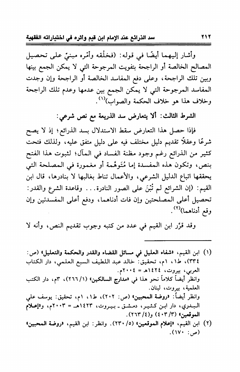 سد الذرائع عند الإمام ابن القيم وأثره في إختياراته الفقهية