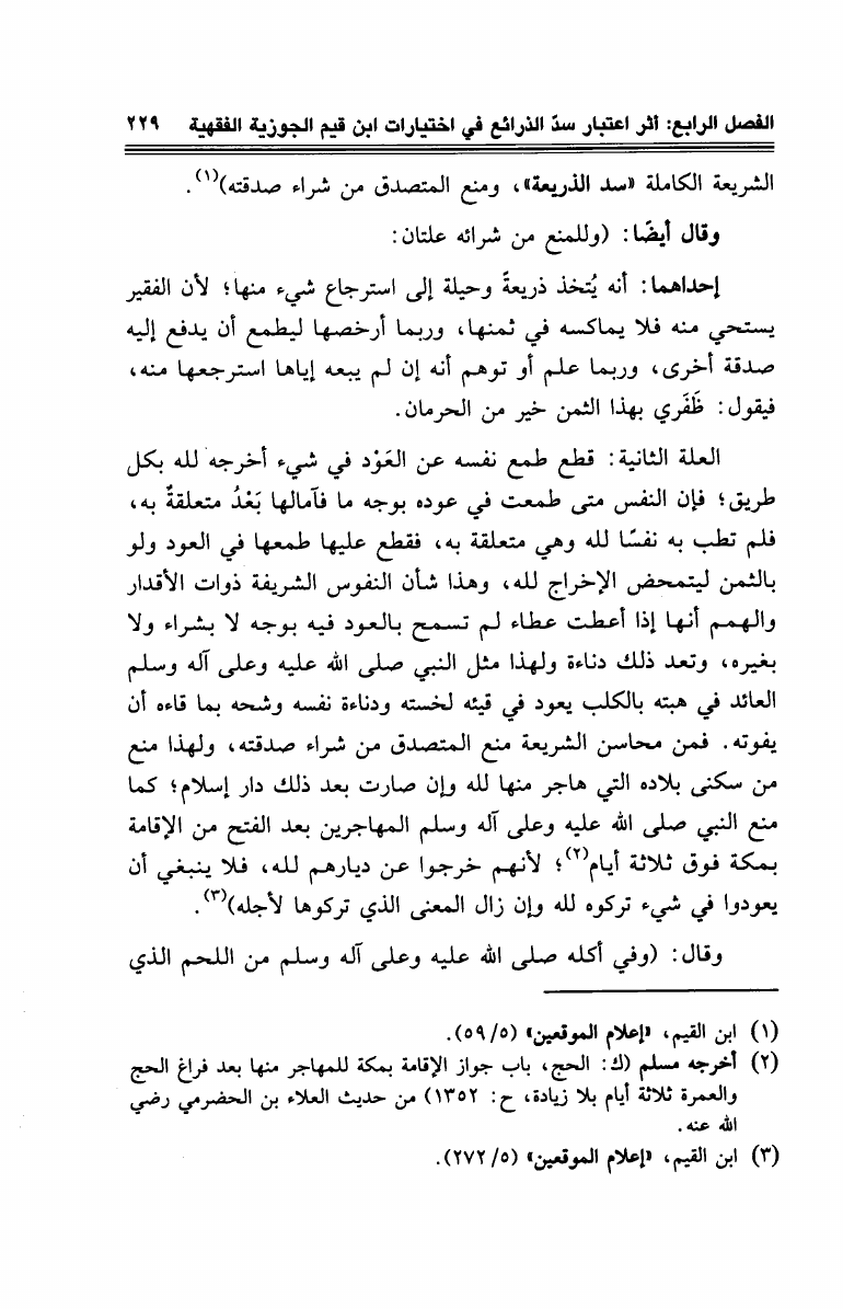 سد الذرائع عند الإمام ابن القيم وأثره في إختياراته الفقهية