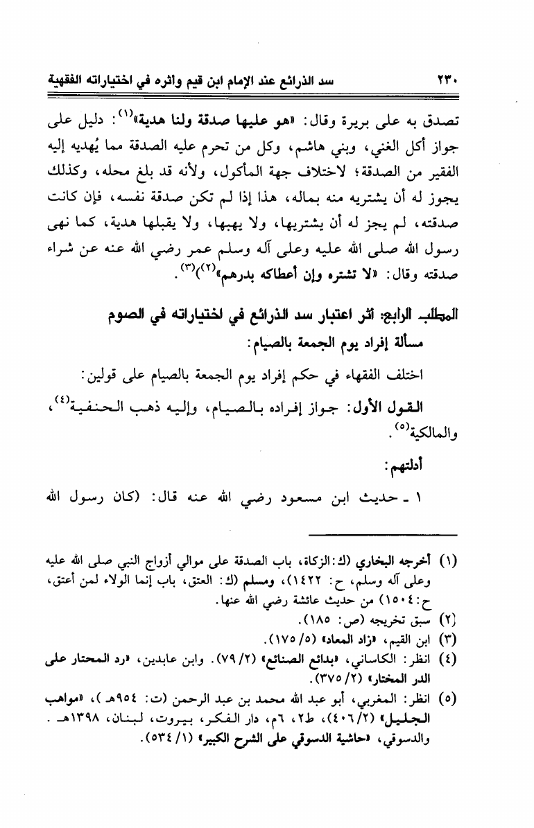 سد الذرائع عند الإمام ابن القيم وأثره في إختياراته الفقهية