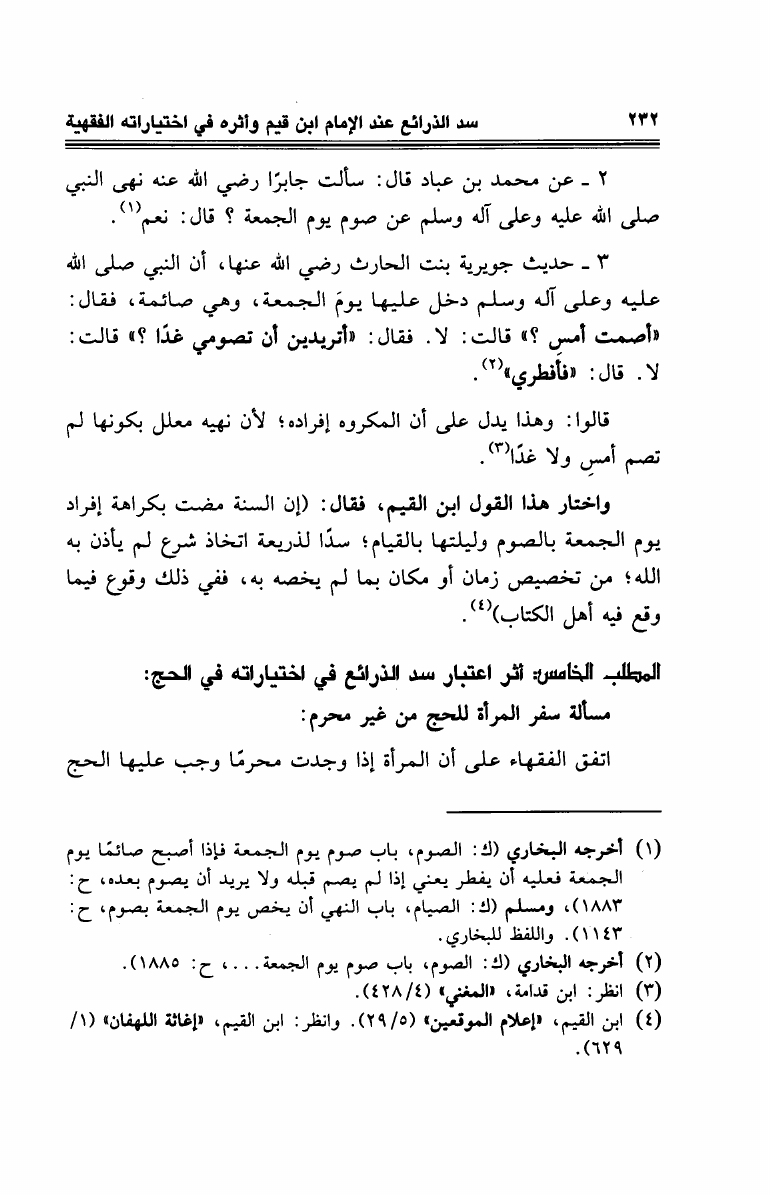 سد الذرائع عند الإمام ابن القيم وأثره في إختياراته الفقهية