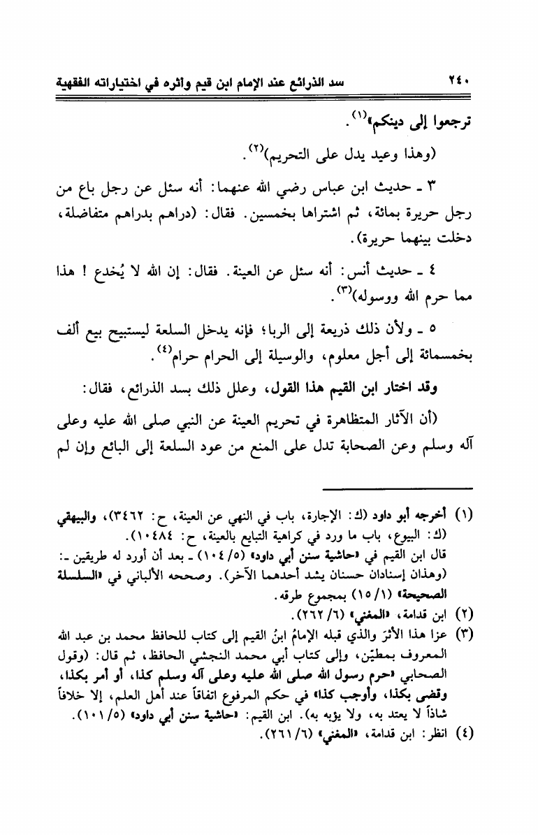 سد الذرائع عند الإمام ابن القيم وأثره في إختياراته الفقهية