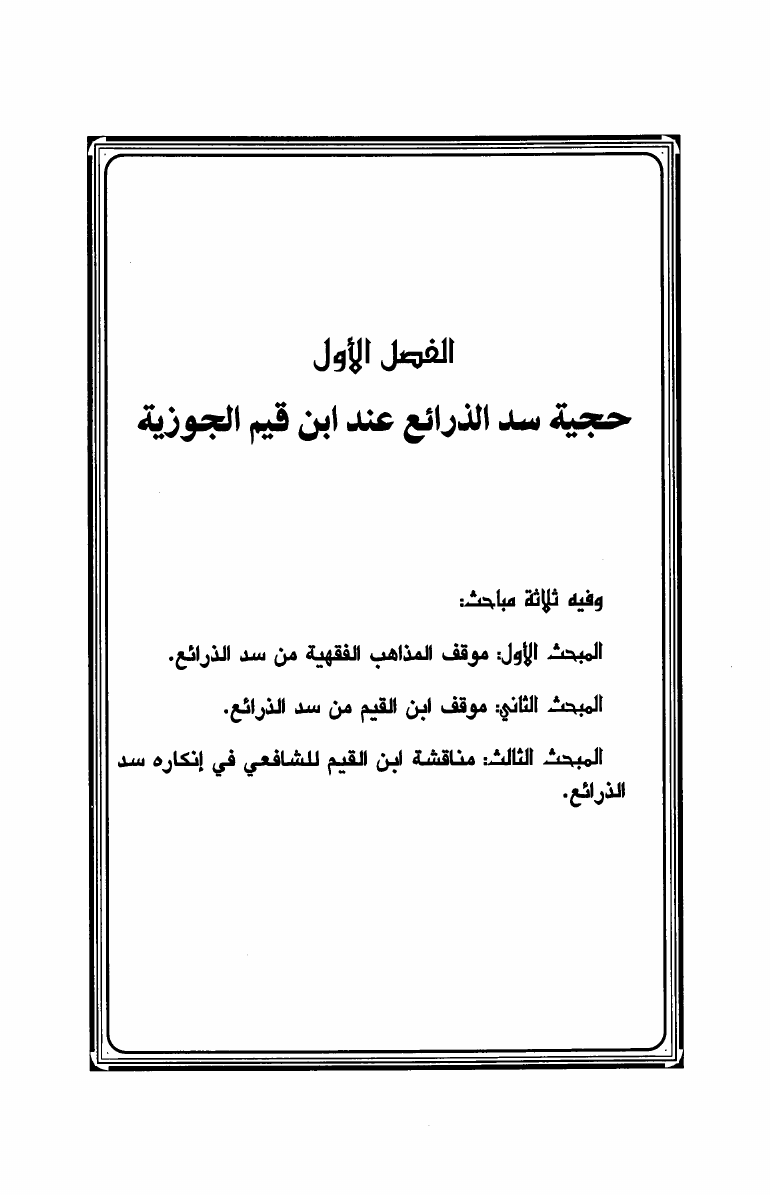 سد الذرائع عند الإمام ابن القيم وأثره في إختياراته الفقهية
