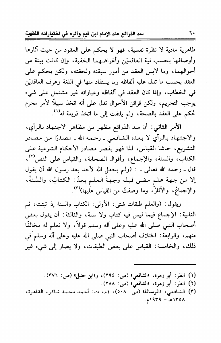 سد الذرائع عند الإمام ابن القيم وأثره في إختياراته الفقهية