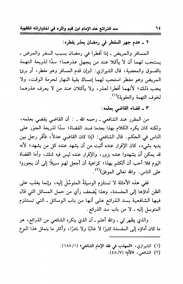 سد الذرائع عند الإمام ابن القيم وأثره في إختياراته الفقهية
