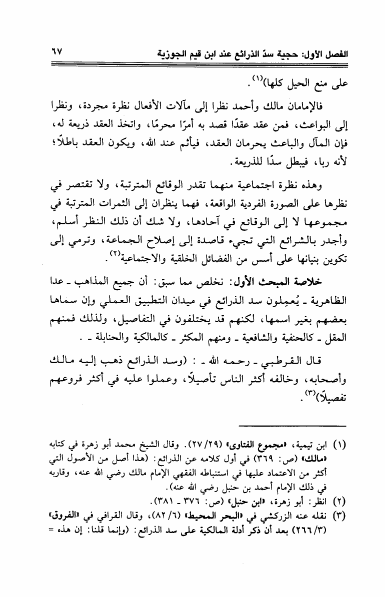 سد الذرائع عند الإمام ابن القيم وأثره في إختياراته الفقهية