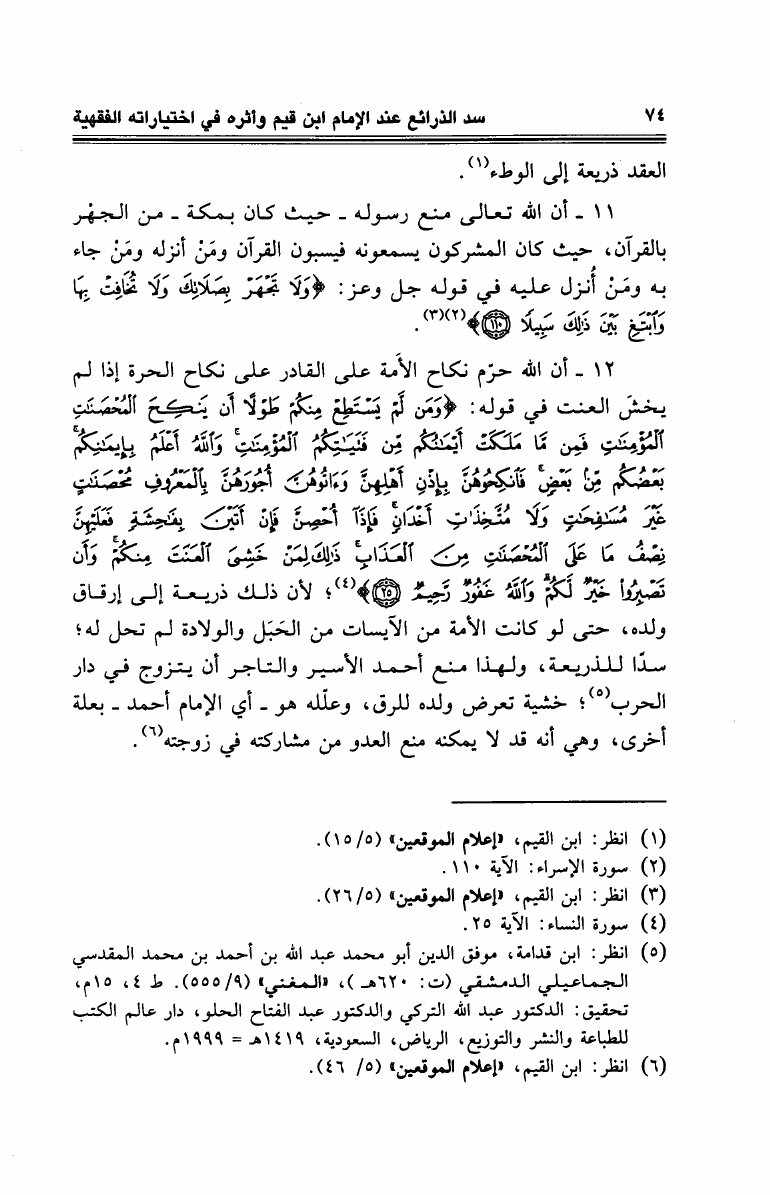سد الذرائع عند الإمام ابن القيم وأثره في إختياراته الفقهية