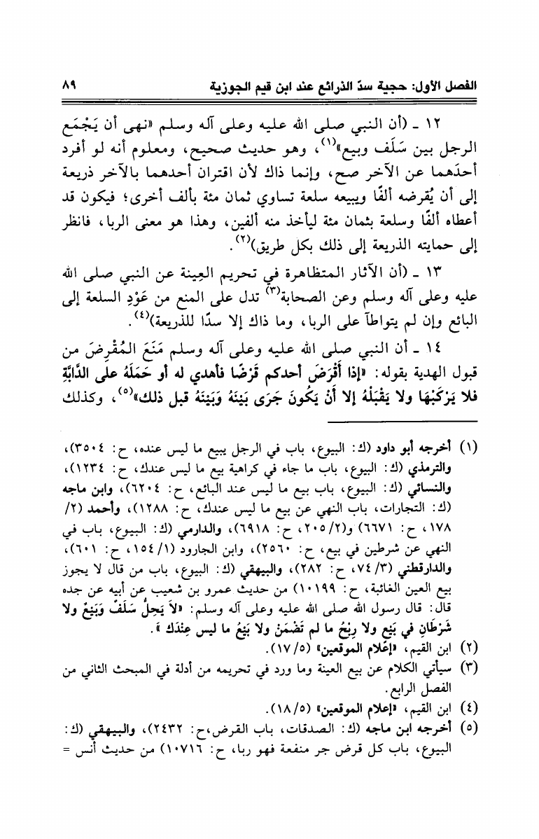سد الذرائع عند الإمام ابن القيم وأثره في إختياراته الفقهية