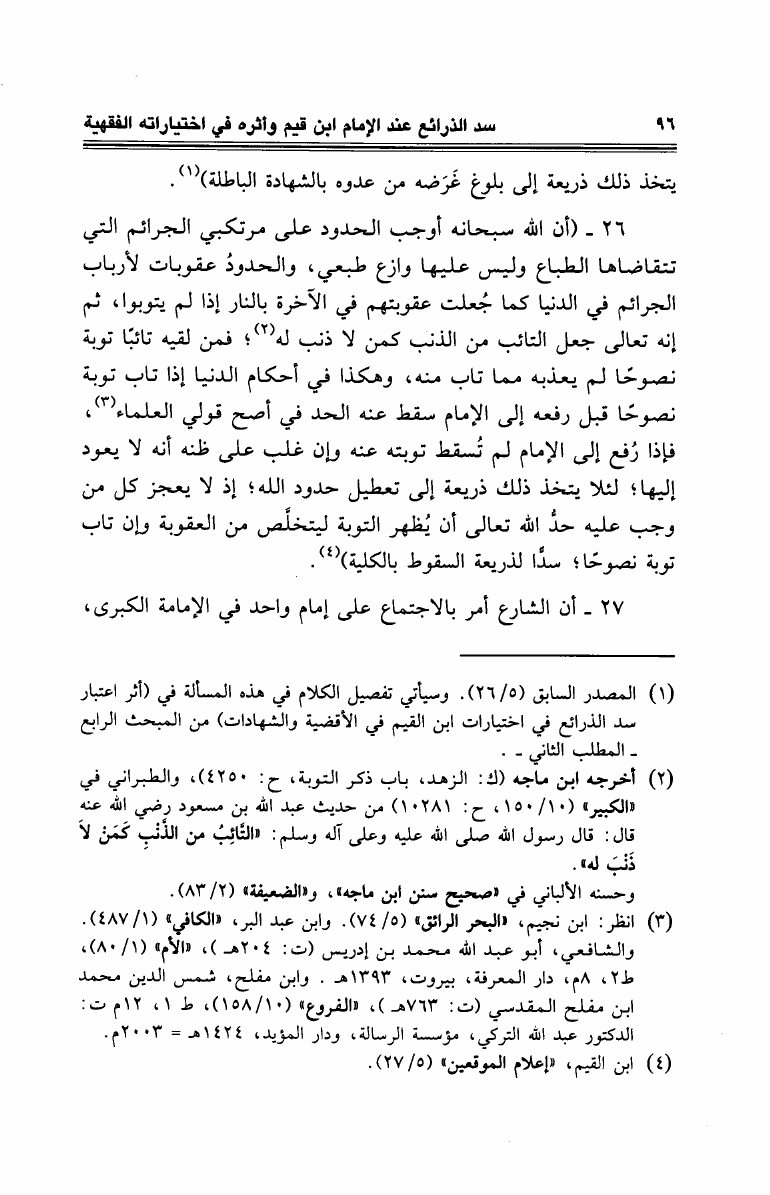 سد الذرائع عند الإمام ابن القيم وأثره في إختياراته الفقهية