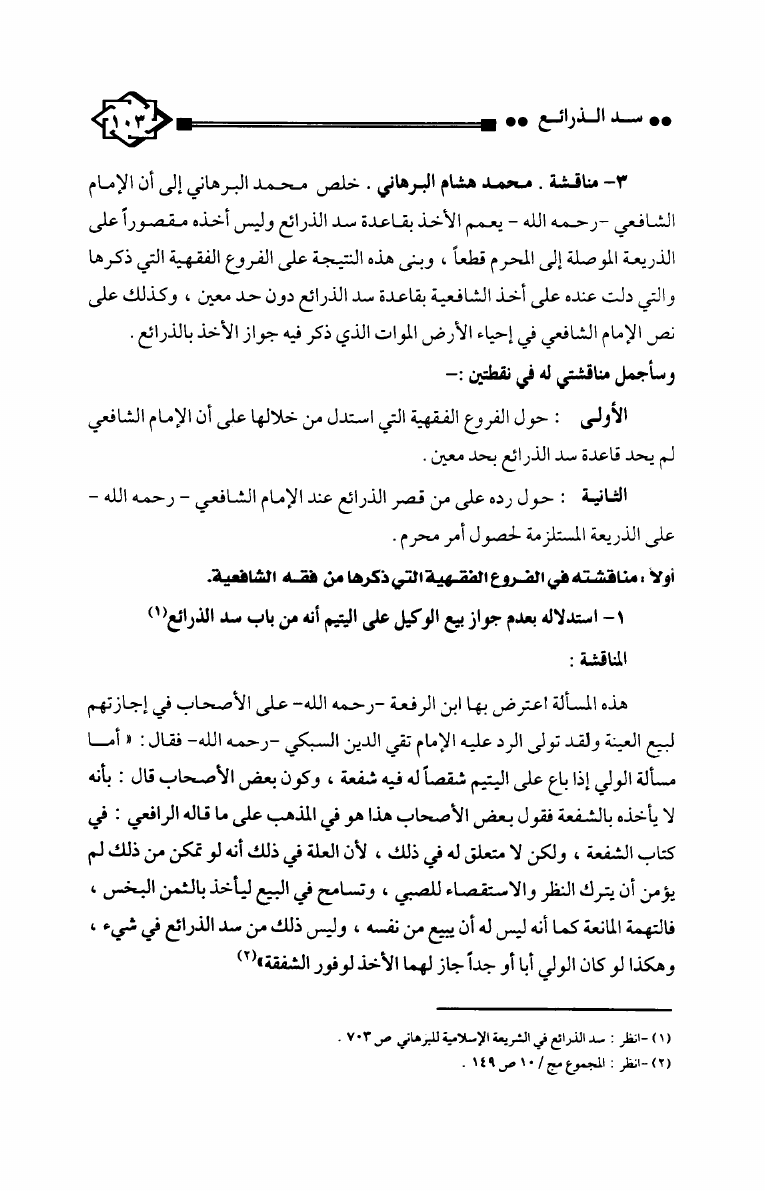 سد الذرائع عند شيخ الإسلام ابن تيمية