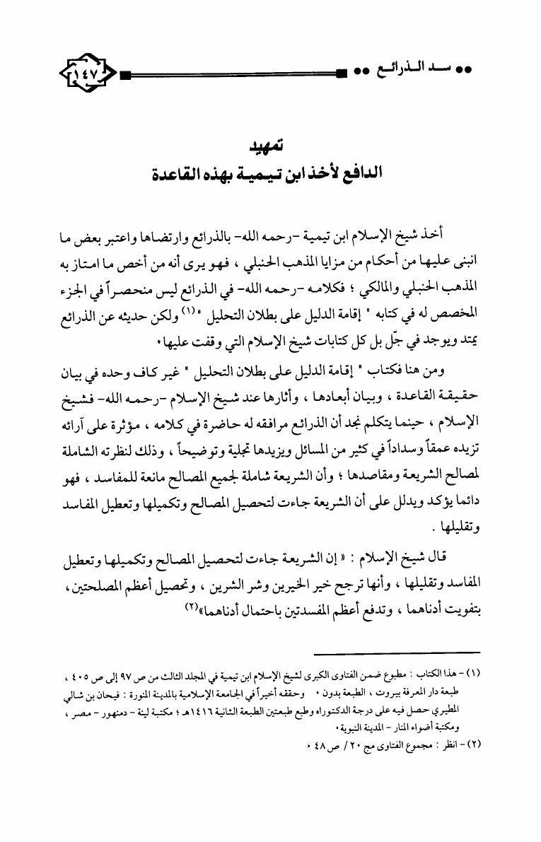 سد الذرائع عند شيخ الإسلام ابن تيمية