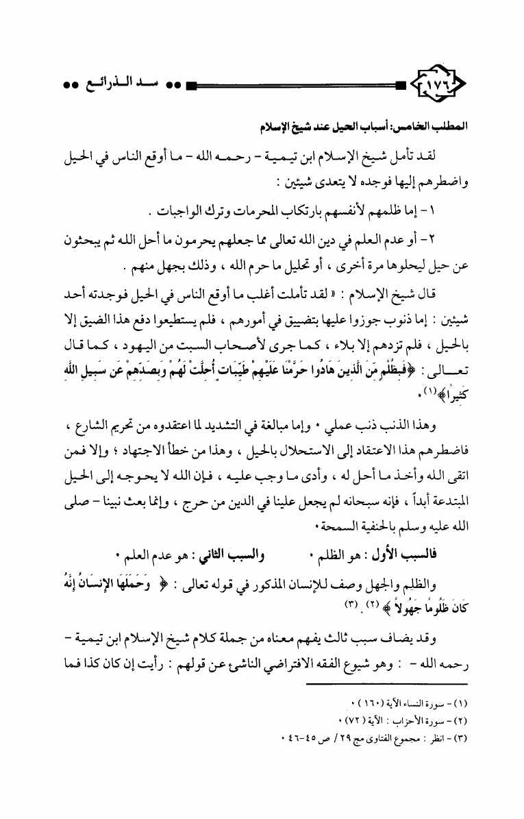 سد الذرائع عند شيخ الإسلام ابن تيمية