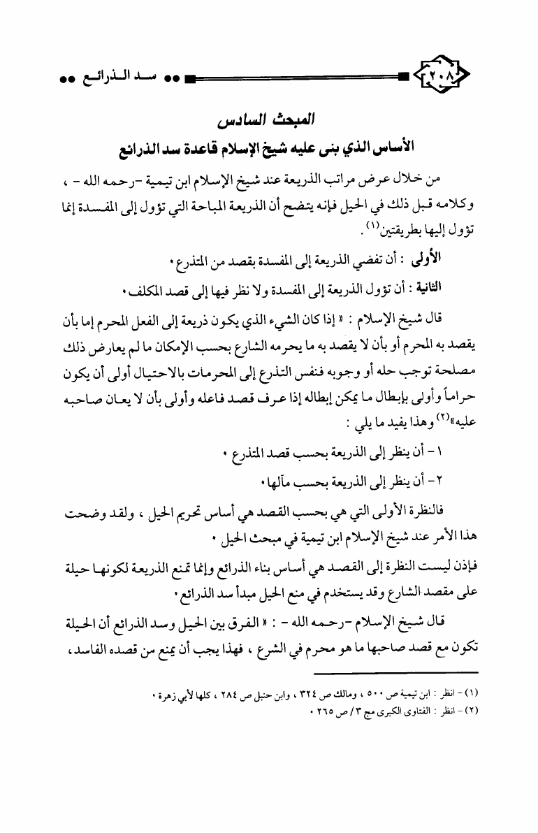 سد الذرائع عند شيخ الإسلام ابن تيمية