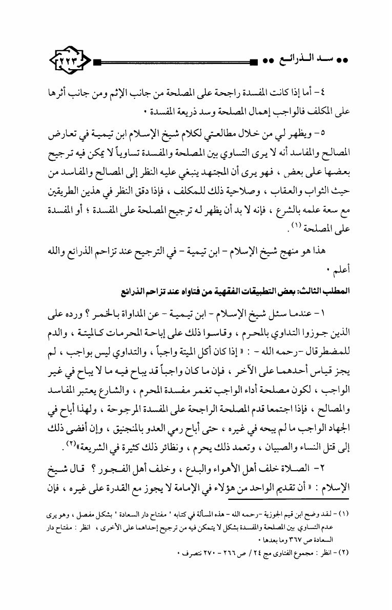 سد الذرائع عند شيخ الإسلام ابن تيمية