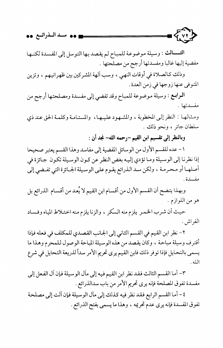 سد الذرائع عند شيخ الإسلام ابن تيمية