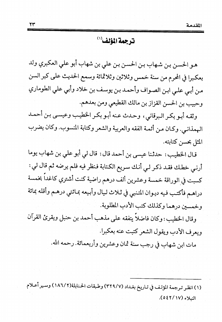 شرح رسالة في أصول الفقه للحسن بن شهاب العكبري