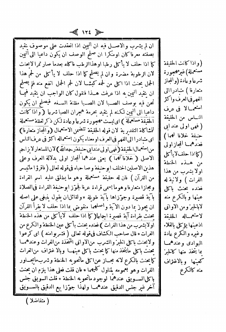 نام کتاب : شرح منار الأنوار في أصول الفقه وبهامشه شرح الشيخ زين الدين عبد الرحمن بن أبي بكر ابن العيني نویسنده : عبد اللطيف الشهير بابن الملك جلد : 1 صفحه : 124
