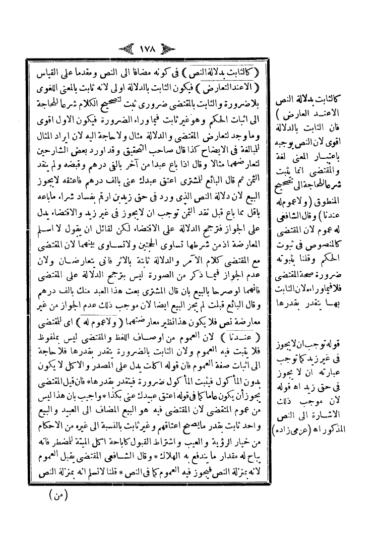 نام کتاب : شرح منار الأنوار في أصول الفقه وبهامشه شرح الشيخ زين الدين عبد الرحمن بن أبي بكر ابن العيني نویسنده : عبد اللطيف الشهير بابن الملك جلد : 1 صفحه : 178