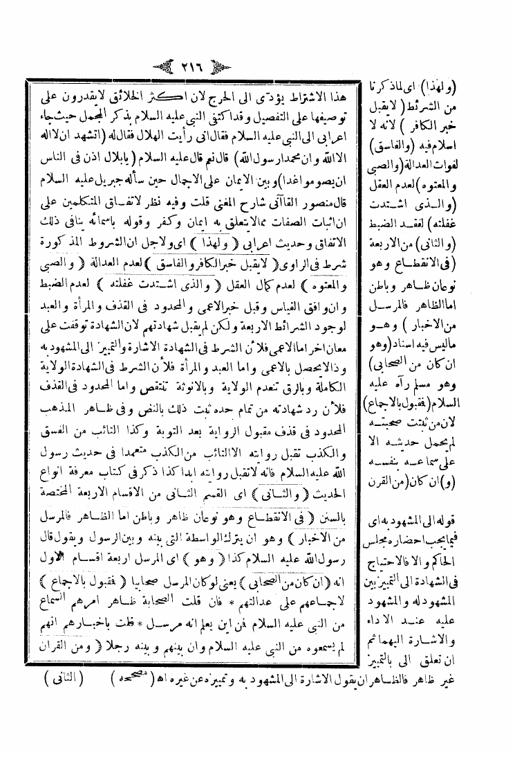 نام کتاب : شرح منار الأنوار في أصول الفقه وبهامشه شرح الشيخ زين الدين عبد الرحمن بن أبي بكر ابن العيني نویسنده : عبد اللطيف الشهير بابن الملك جلد : 1 صفحه : 216
