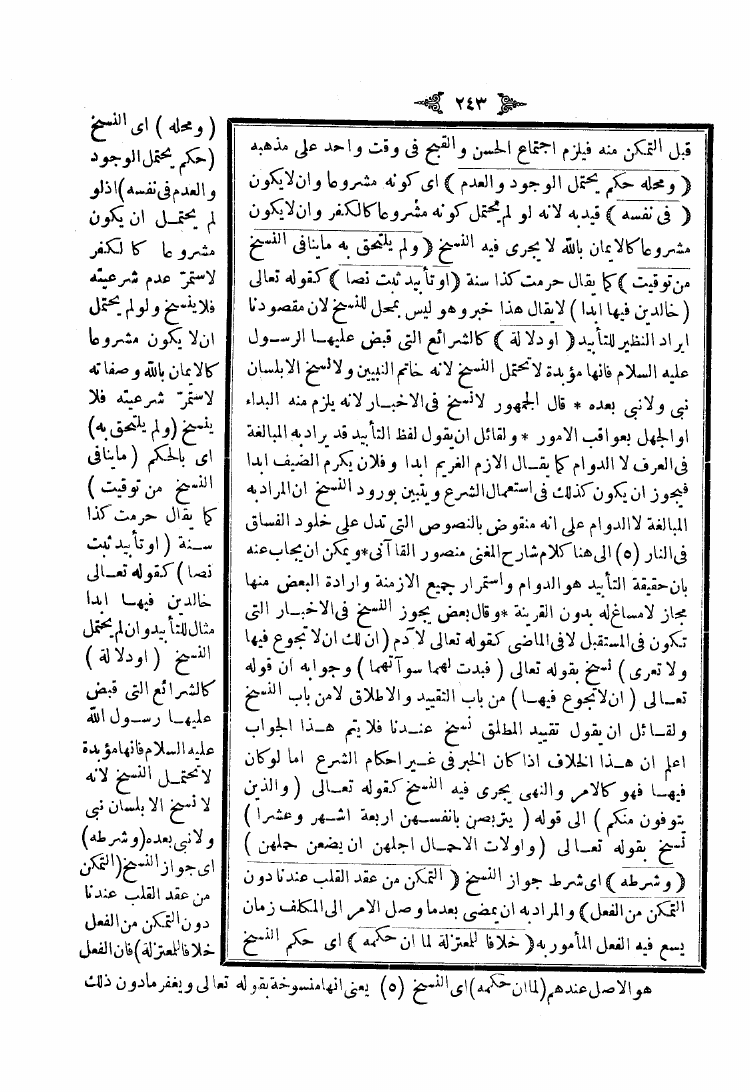 نام کتاب : شرح منار الأنوار في أصول الفقه وبهامشه شرح الشيخ زين الدين عبد الرحمن بن أبي بكر ابن العيني نویسنده : عبد اللطيف الشهير بابن الملك جلد : 1 صفحه : 243
