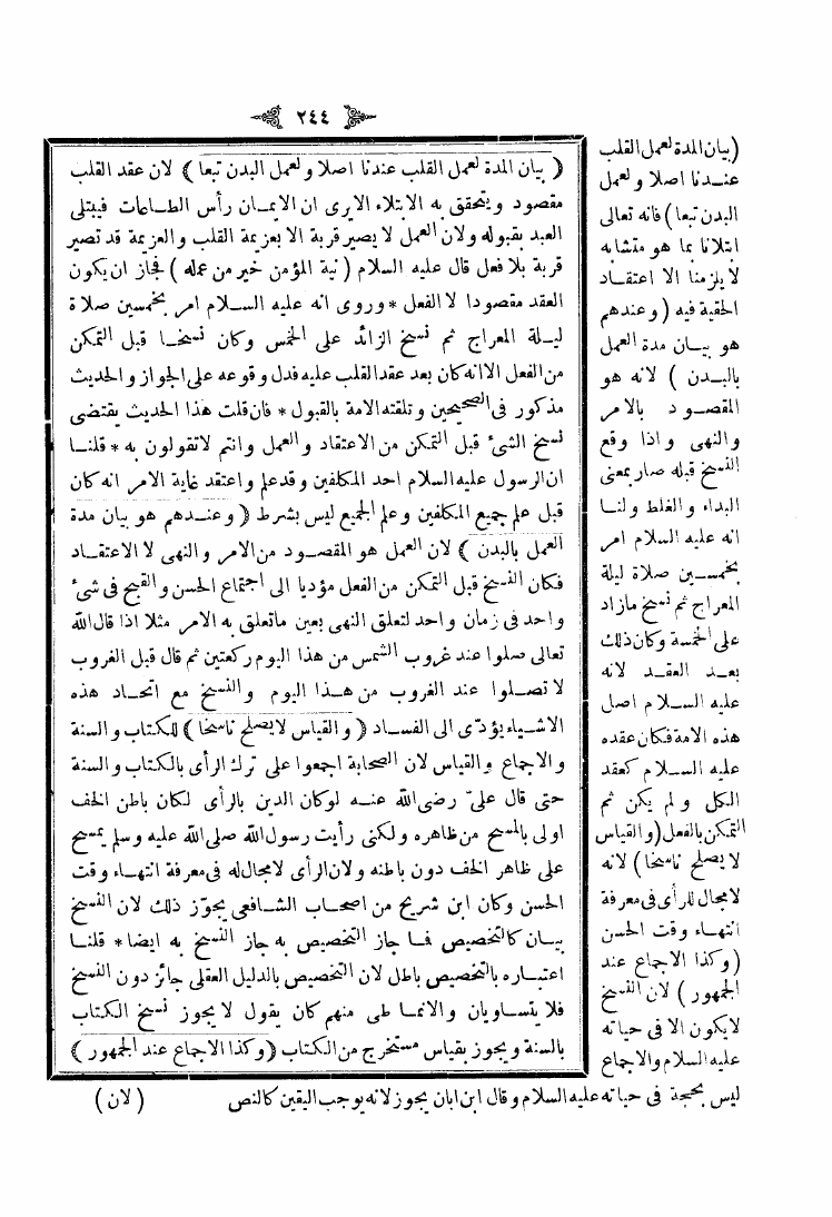 نام کتاب : شرح منار الأنوار في أصول الفقه وبهامشه شرح الشيخ زين الدين عبد الرحمن بن أبي بكر ابن العيني نویسنده : عبد اللطيف الشهير بابن الملك جلد : 1 صفحه : 244