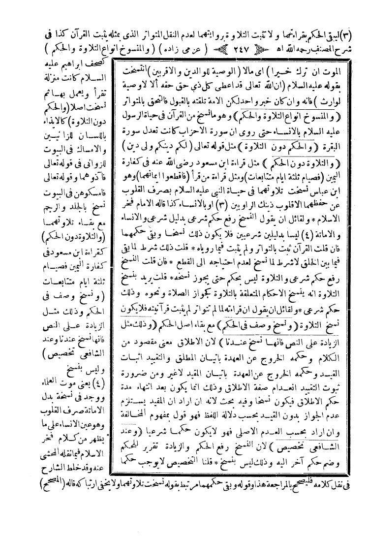 نام کتاب : شرح منار الأنوار في أصول الفقه وبهامشه شرح الشيخ زين الدين عبد الرحمن بن أبي بكر ابن العيني نویسنده : عبد اللطيف الشهير بابن الملك جلد : 1 صفحه : 247