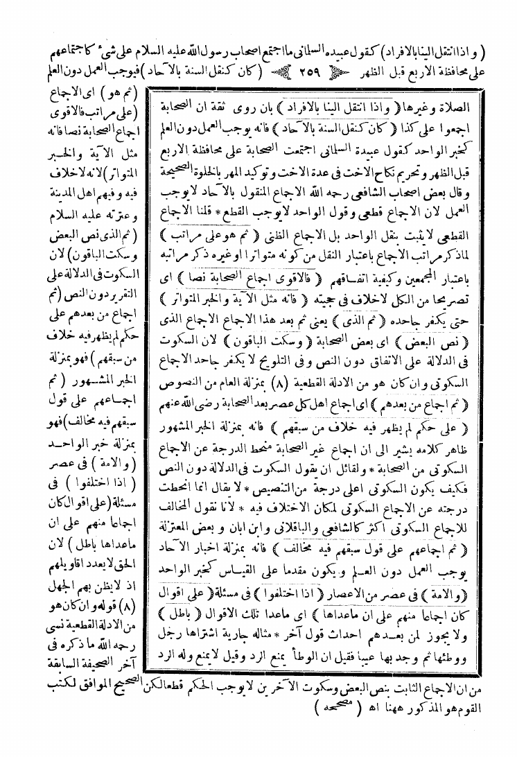 نام کتاب : شرح منار الأنوار في أصول الفقه وبهامشه شرح الشيخ زين الدين عبد الرحمن بن أبي بكر ابن العيني نویسنده : عبد اللطيف الشهير بابن الملك جلد : 1 صفحه : 259