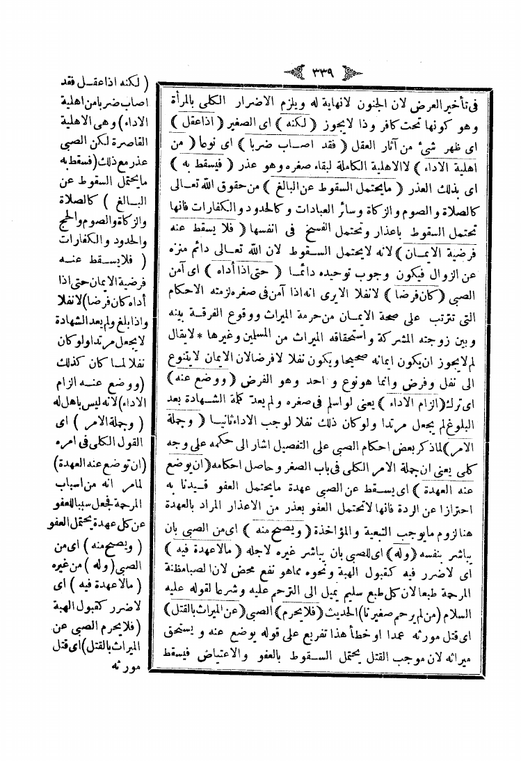نام کتاب : شرح منار الأنوار في أصول الفقه وبهامشه شرح الشيخ زين الدين عبد الرحمن بن أبي بكر ابن العيني نویسنده : عبد اللطيف الشهير بابن الملك جلد : 1 صفحه : 339