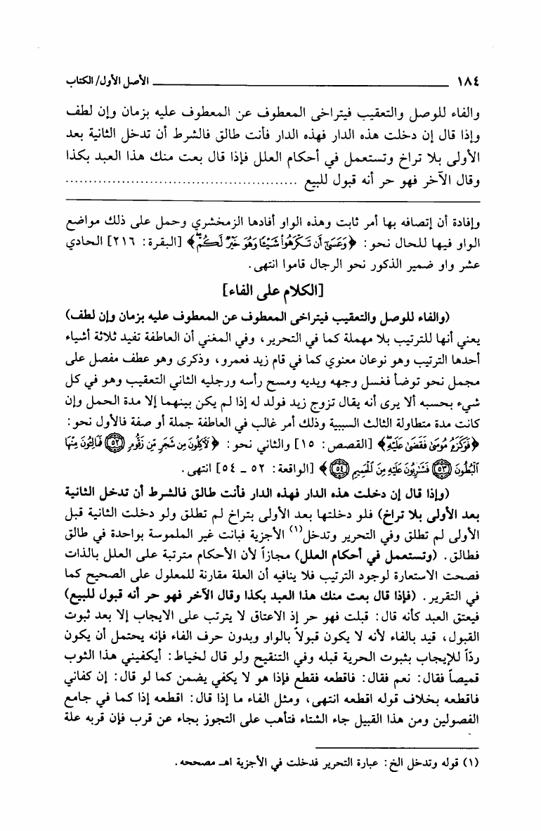 نام کتاب : فتح الغفار بشرح المنار المعروف بمشكاة الأنوار في أصول المنار وعليه بعض حواشي البحراوي (ط. العلمية) نویسنده : زين الدين بن إبراهيم بن محمد بن نجيم الحنفي جلد : 1 صفحه : 184