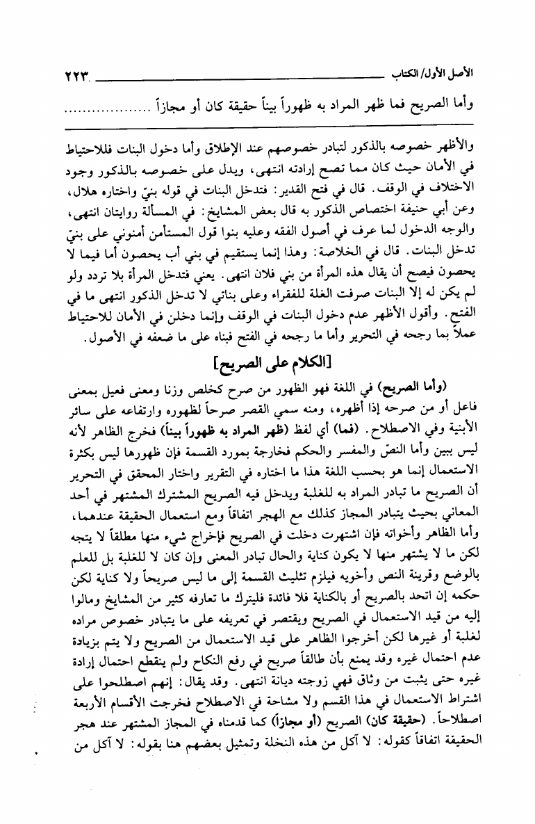 نام کتاب : فتح الغفار بشرح المنار المعروف بمشكاة الأنوار في أصول المنار وعليه بعض حواشي البحراوي (ط. العلمية) نویسنده : زين الدين بن إبراهيم بن محمد بن نجيم الحنفي جلد : 1 صفحه : 223
