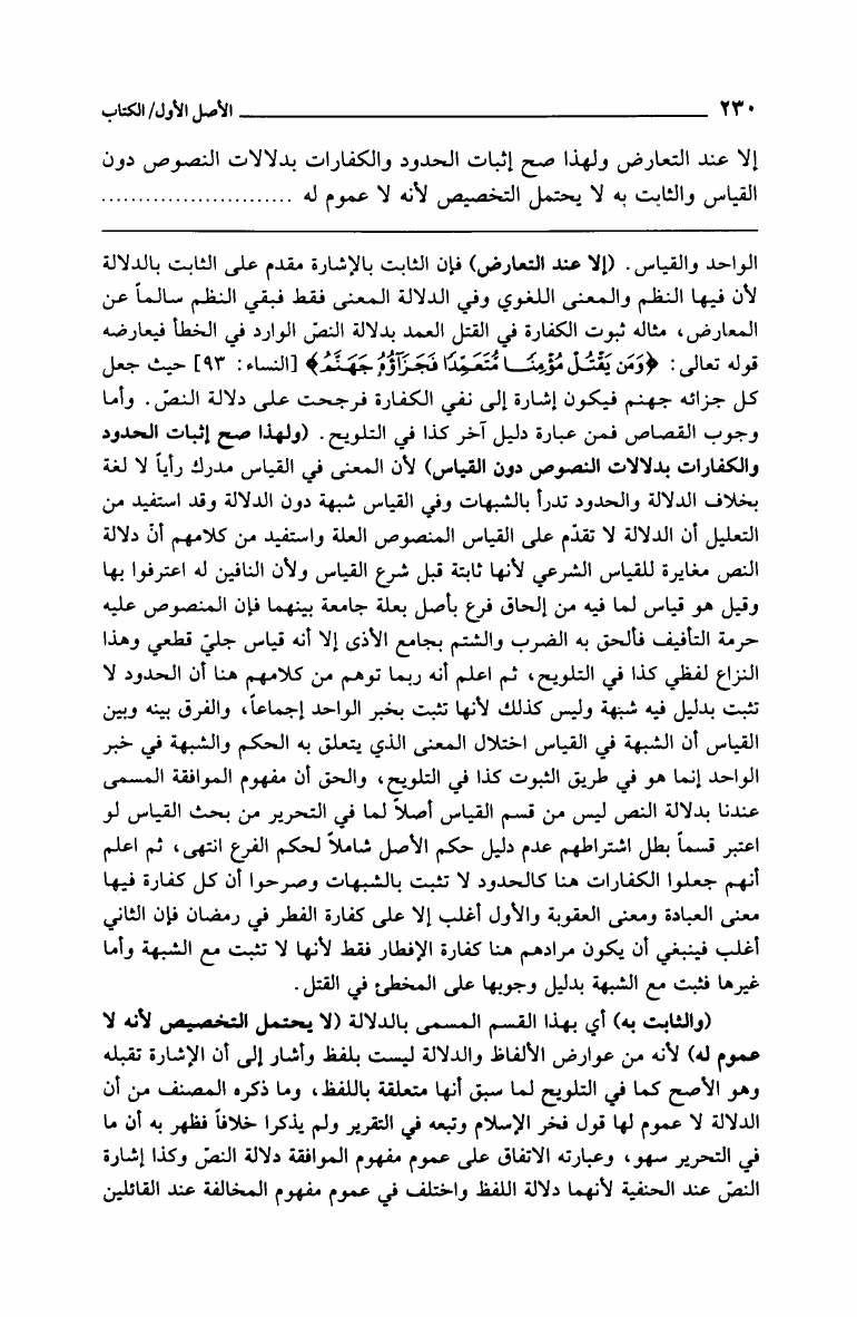 نام کتاب : فتح الغفار بشرح المنار المعروف بمشكاة الأنوار في أصول المنار وعليه بعض حواشي البحراوي (ط. العلمية) نویسنده : زين الدين بن إبراهيم بن محمد بن نجيم الحنفي جلد : 1 صفحه : 230