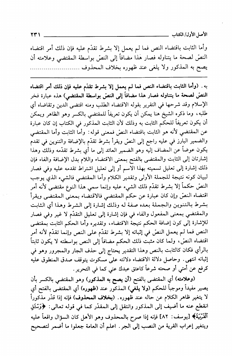 نام کتاب : فتح الغفار بشرح المنار المعروف بمشكاة الأنوار في أصول المنار وعليه بعض حواشي البحراوي (ط. العلمية) نویسنده : زين الدين بن إبراهيم بن محمد بن نجيم الحنفي جلد : 1 صفحه : 231