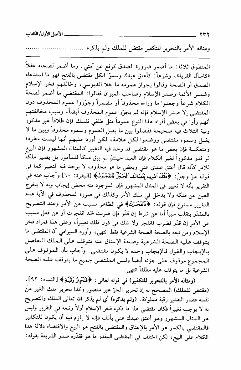 نام کتاب : فتح الغفار بشرح المنار المعروف بمشكاة الأنوار في أصول المنار وعليه بعض حواشي البحراوي (ط. العلمية) نویسنده : زين الدين بن إبراهيم بن محمد بن نجيم الحنفي جلد : 1 صفحه : 232