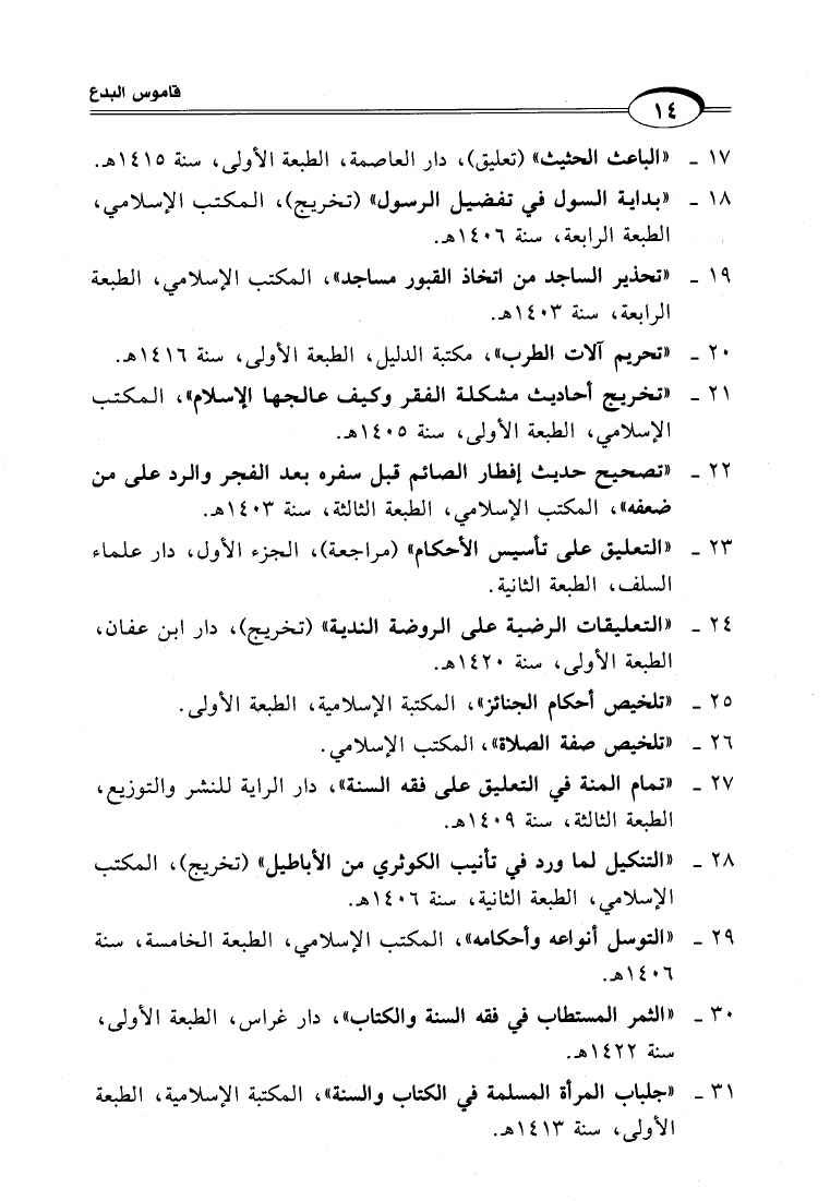 قاموس البدع مستخرج من كتب الإمام العلامة محمد ناصر الدين الألباني