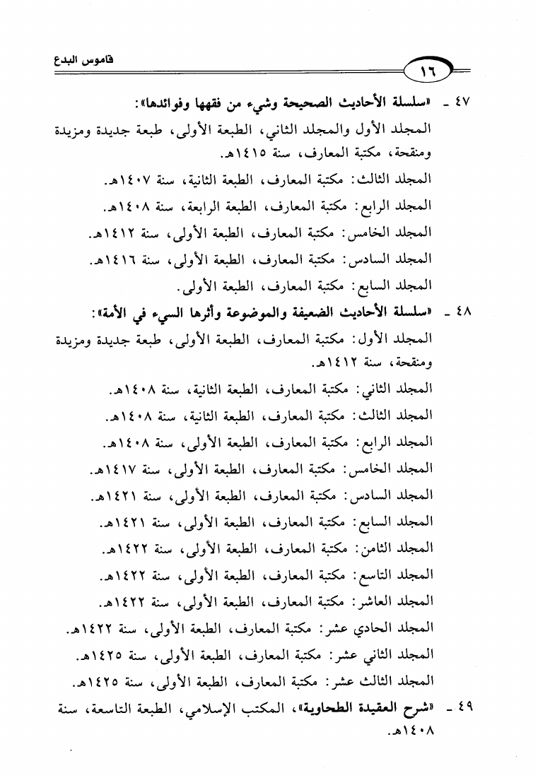 قاموس البدع مستخرج من كتب الإمام العلامة محمد ناصر الدين الألباني