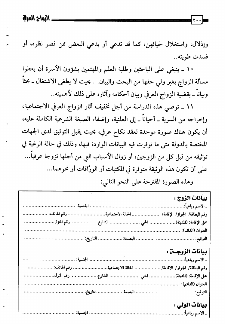 الزواج العرفي حقيقته وأحكامه وآثاره والأنكحة ذات الصلة به دراسة فقهية مقارنة