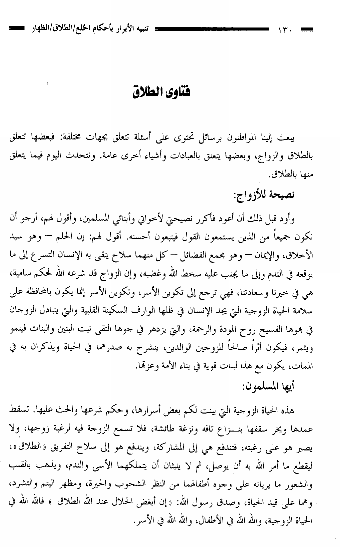 تنبيه الأبرار بأحكام الخلع والطلاق والظهار