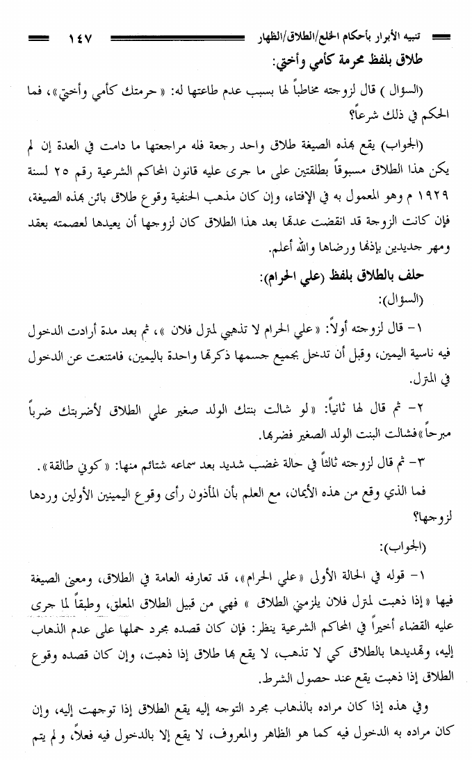 تنبيه الأبرار بأحكام الخلع والطلاق والظهار