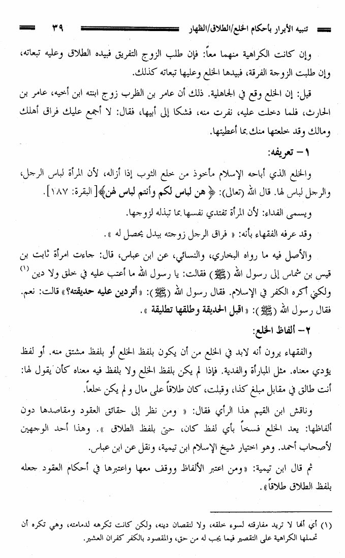 تنبيه الأبرار بأحكام الخلع والطلاق والظهار