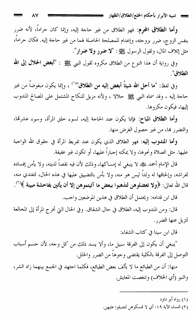 تنبيه الأبرار بأحكام الخلع والطلاق والظهار