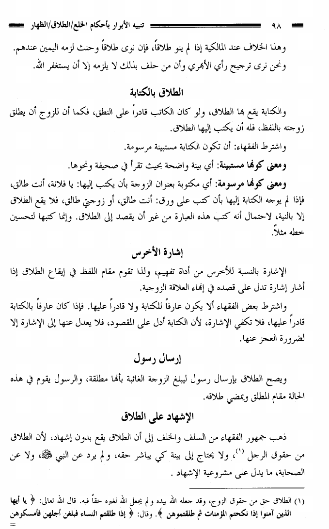 تنبيه الأبرار بأحكام الخلع والطلاق والظهار